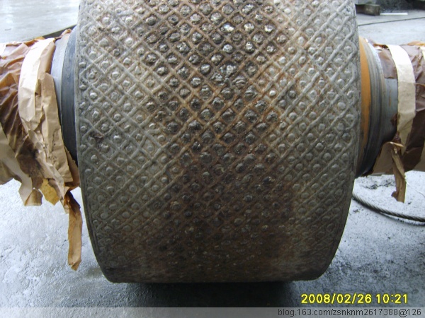 5)按原圖紙尺寸要求對(duì)輥?zhàn)舆M(jìn)行堆焊,焊至符合圖紙要求或根據(jù)實(shí)際工況設(shè)計(jì)、排布、鑲嵌合金柱釘